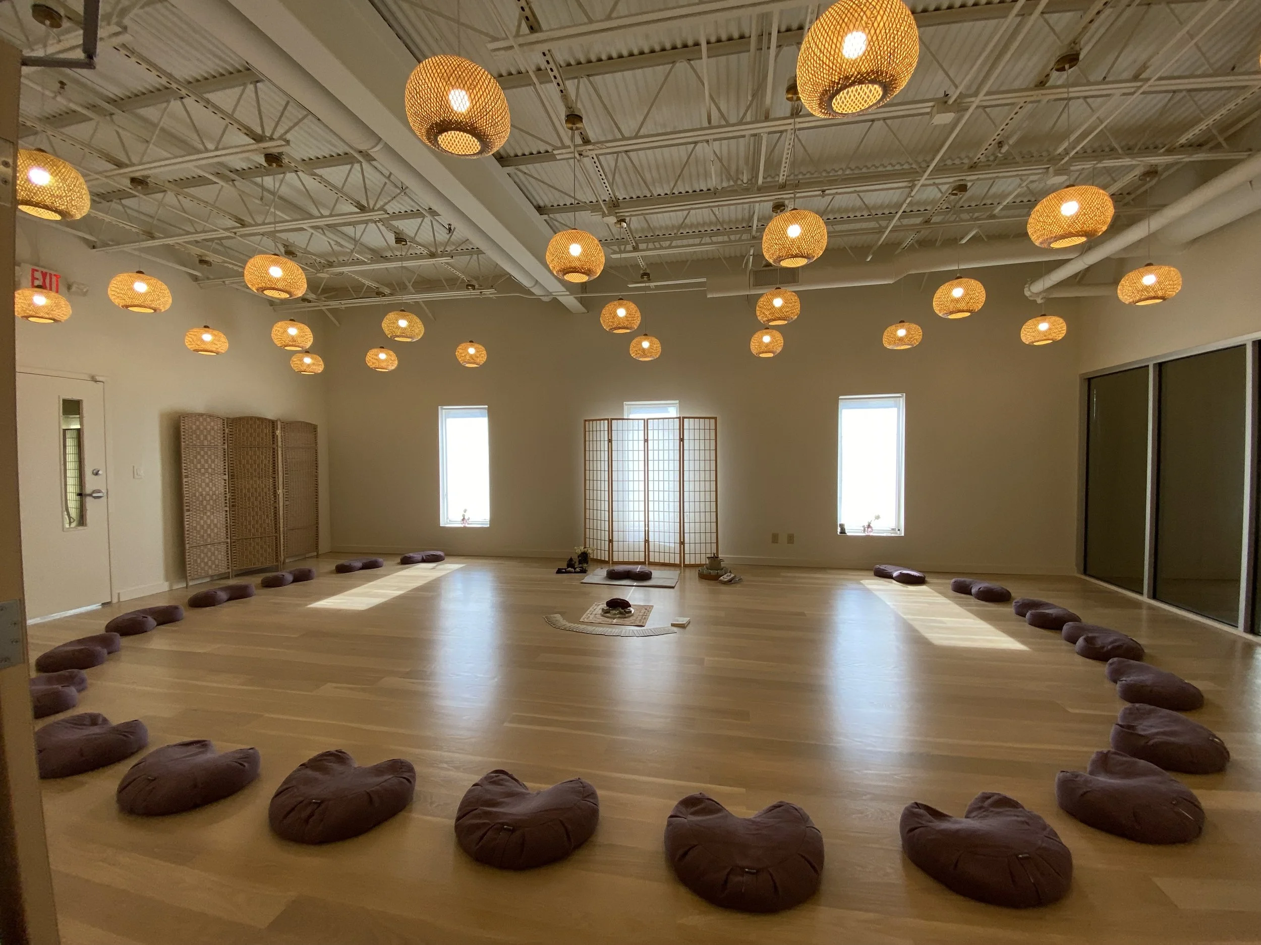 Room Description: Our Meditation Room is tucked away in an intimate and noiseless section of our center to facilitate looking inward and cultivating peace of mind. The room features a compact carpet flooring which provides earthy-grounding support for your practice. Need to add more.